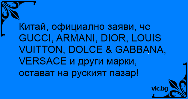 Китай, официално заяви, че GUCCI, ARMANI, DIOR, LOUIS VUITTON, DOLCE & GABBANA, VERSACE и други марки, остават на руският пазар!