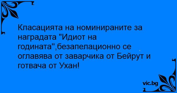 Класацията на номинираните за наградата "Идиot на годината'',безапелационно се оглавява от заварчика от Бейрут и готвача от Ухан!
