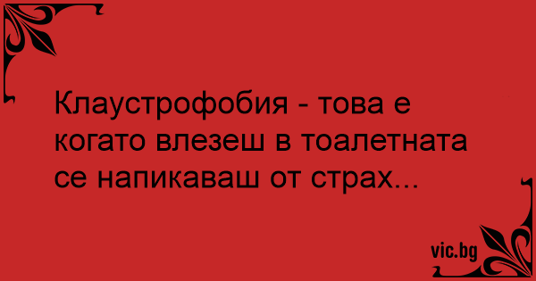 Клаустрофобия - това е когато влезеш в тоалетната се напикаваш от страх...