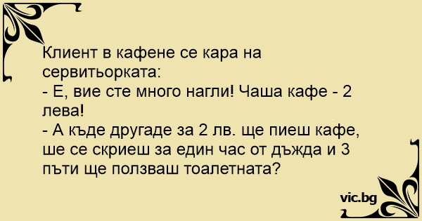 - Е, вие сте много нагли! Чаша кафе - 2 лева!
