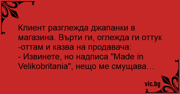 - Извинете, но надписа "Made in Velikobritania", нещо ме смущава…