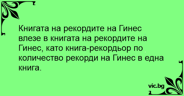 Книгата на рекордите на Гинес влезе в книгата на рекордите на Гинес, като книга-рекордьор по количество рекорди на Гинес в една книга.