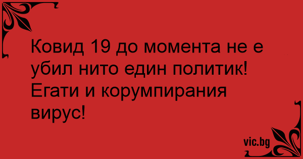 Ковид 19 до момента не е убил нито един политик!
