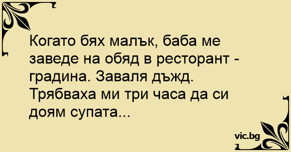 Когато бях малък, баба ме заведе на обяд в ресторант - градина. Заваля дъжд.