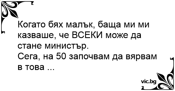 Когато бях малък, баща ми ми казваше, че ВСЕКИ може да стане министър.