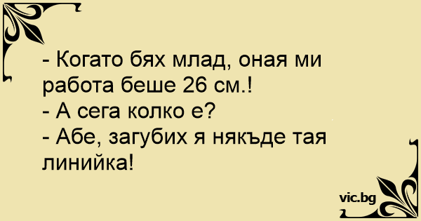 - Когато бях млад, оная ми работа беше 26 см.!