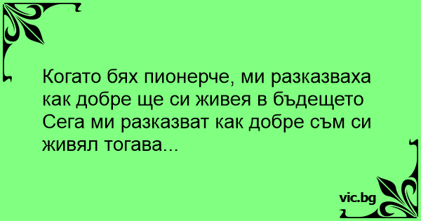 Когато бях пионерче, ми разказваха как добре ще си живея в бъдещето Сега ми разказват как добре съм си живял тогава...