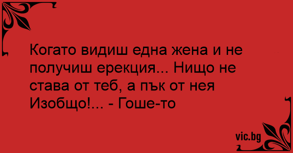 Когато видиш една жена и не получиш ерекция... Нищо не става от теб, а пък от нея Изобщо!... - Гоше-то