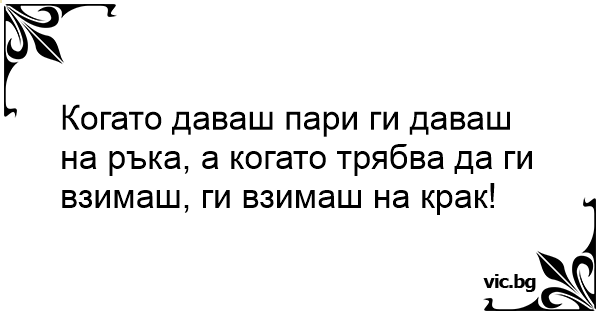 Когато даваш пари ги даваш на ръка, а когато трябва да ги взимаш, ги взимаш на крак!