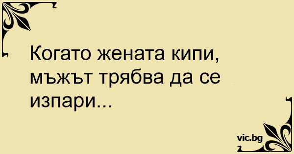 Когато жената кипи, мъжът трябва да се изпари...