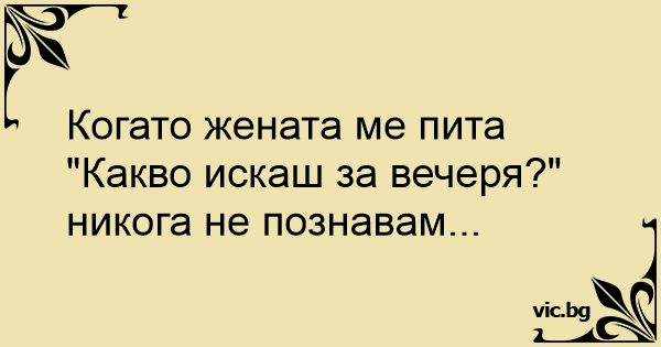 Когато жената ме пита "Какво искаш за вечеря?" никога не познавам...