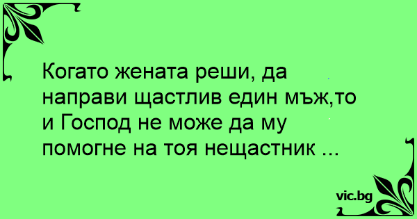 Когато жената реши, да направи щастлив един мъж,то и Господ не може да му помогне на тоя нещастник ...