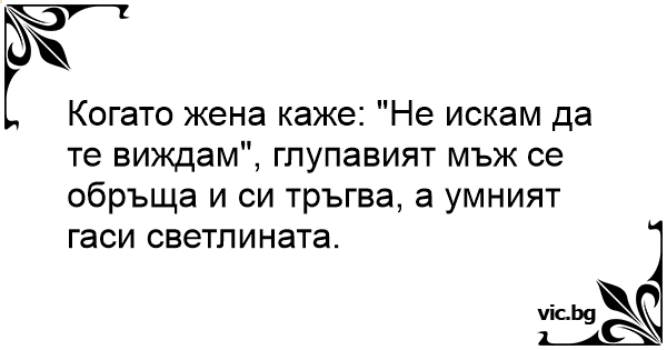 Когато жена каже: "Не искам да те виждам", глупавият мъж се обръща и си тръгва, а умният гаси светлината.