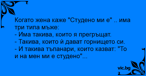 Когато жена каже "Студено ми е" .. има три типа мъже: