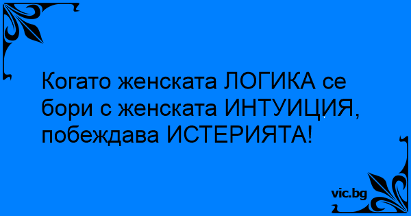 Когато женската ЛОГИКА се бори с женската ИНТУИЦИЯ, побеждава ИСТЕРИЯТА!