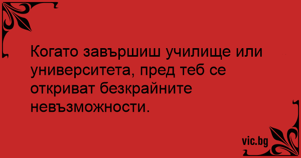 Когато завършиш училище или университета, пред теб се откриват безкрайните невъзможности.