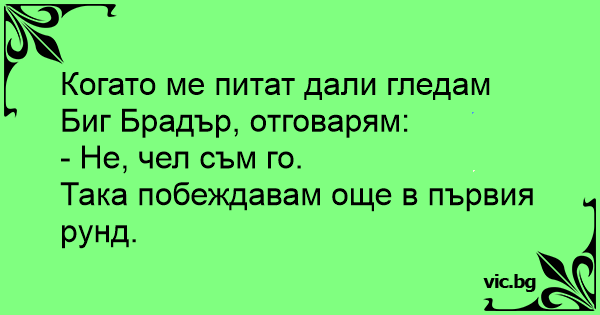 Когато ме питат дали гледам Биг Брадър, отговарям: