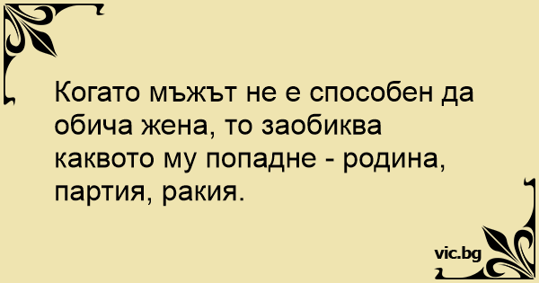 Когато мъжът не е способен да обича жена, то заобиква каквото му попадне - родина, партия, ракия.