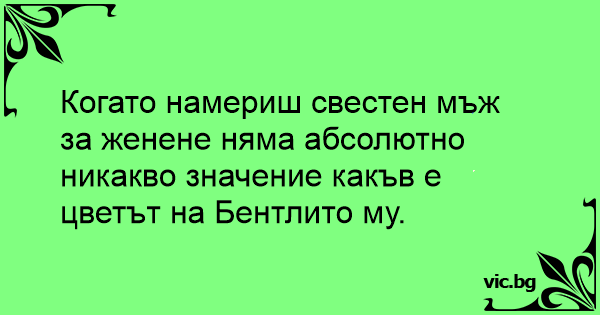 Когато намериш свестен мъж за женене няма абсолютно никакво значение какъв е цветът на Бентлито му.