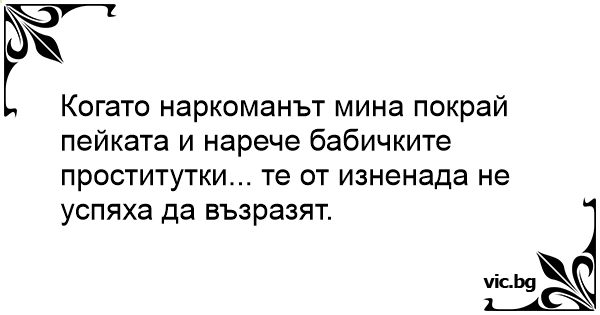 Когато наркоманът мина покрай пейката и нарече бабичките пpoctиtуtkи... те от изненада не успяха да възразят.