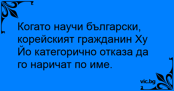 Когато научи български, корейският гражданин Ху Йо категорично отказа да го наричат по име.