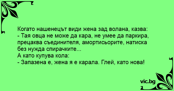 Когато нашенецът види жена зад волана, казва: