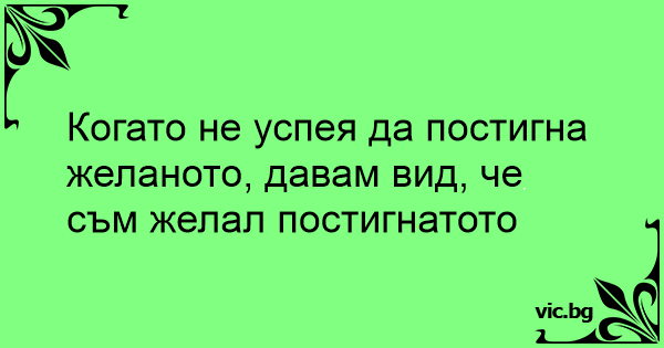 Когато не успея да постигна желаното, давам вид, че съм желал постигнатото