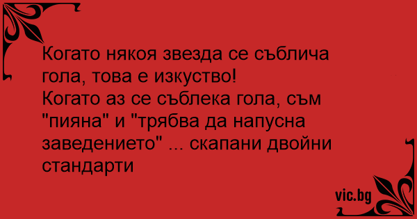 Когато аз се съблека гола, съм "пияна" и "трябва да напусна заведението" ... скапани двойни стандарти