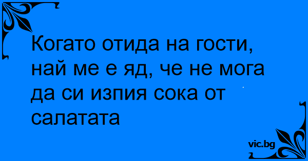 Когато отида на гости, най ме е яд, че не мога да си изпия сока от салатата