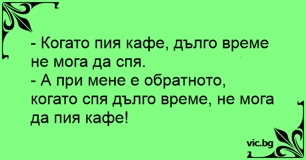 - А при мене е обратното, когато спя дълго време, не мога да пия кафе!