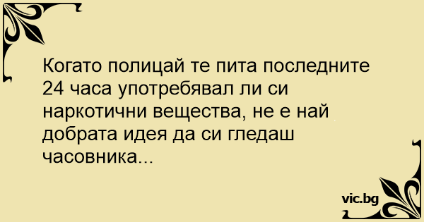 Когато полицай те пита последните 24 часа употребявал ли си наркотични вещества, не е най добрата идея да си гледаш часовника...