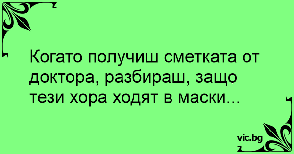 Когато получиш сметката от доктора, разбираш, защо тези хора ходят в маски...