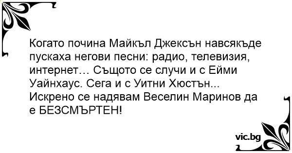 Искрено се надявам Веселин Маринов да е БЕЗСМЪРТЕН!