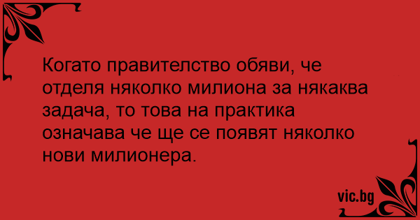 Когато правителство обяви, че отделя няколко милиона за някаква задача, то това на практика означава че ще се появят няколко нови милионера.