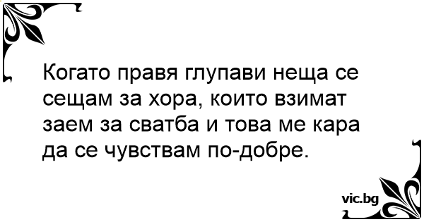 Когато правя глупави неща се сещам за хора, които взимат заем за сватба и това ме кара да се чувствам по-добре.