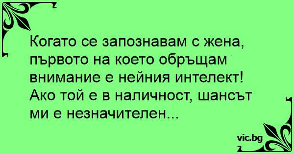 Когато се запознавам с жена, първото на което обръщам внимание е нейния интелект!