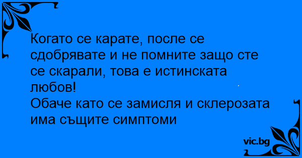 Когато се карате, после се сдобрявате и не помните защо сте се скарали, това е истинската любов!