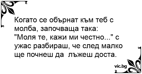 "Моля те, кажи ми честно..." с ужас разбираш, че след малко ще почнеш да лъжеш доста.