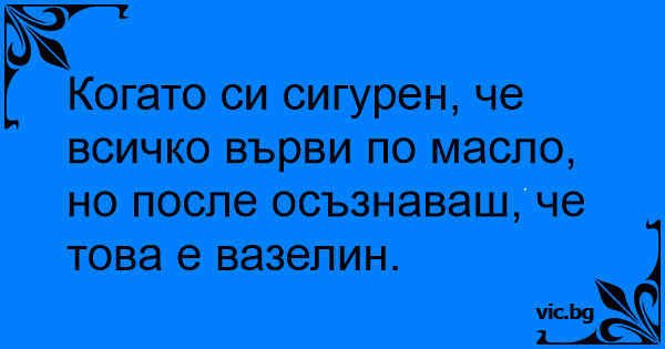 Когато си сигурен, че всичко върви по масло, но после осъзнаваш, че това е вазелин.