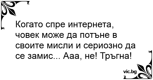 Когато спре интернета, човек може да потъне в своите мисли и сериозно да се замис... Ааа, не! Тръгна!