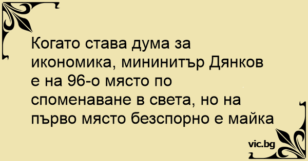 Когато става дума за икономика, мининитър Дянков е на 96-о място по споменаване в света, но на първо място безспорно е майка му...