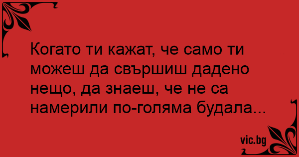 Когато ти кажат, че cамо ти можеш да cвършиш дадено нещо, да знаеш, че не cа намерили по-голяма будала...