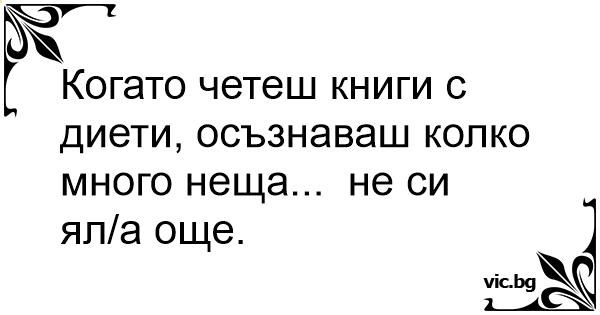 Когато четеш книги с диети, осъзнаваш колко много неща... не си ял/а още.
