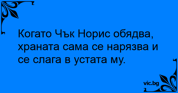 Когато Чък Норис обядва, храната сама се нарязва и се слага в устата му.