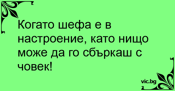 Когато шефа е в настроение, като нищо може да го сбъркаш с човек!