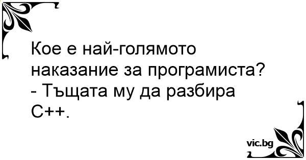 - Тъщата му да разбира С++.