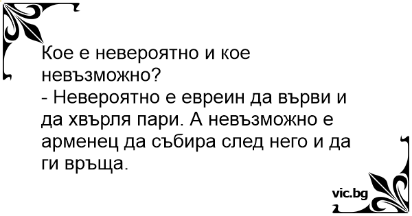 - Невероятно е евреин да върви и да хвърля пари. А невъзможно е арменец да събира след него и да ги връща.
