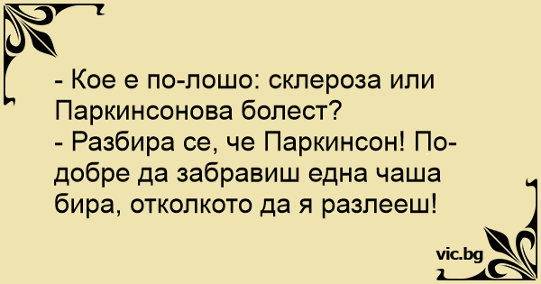 - Разбира се, че Паркинсон! По-добре да забравиш една чаша бира, отколкото да я разлееш!