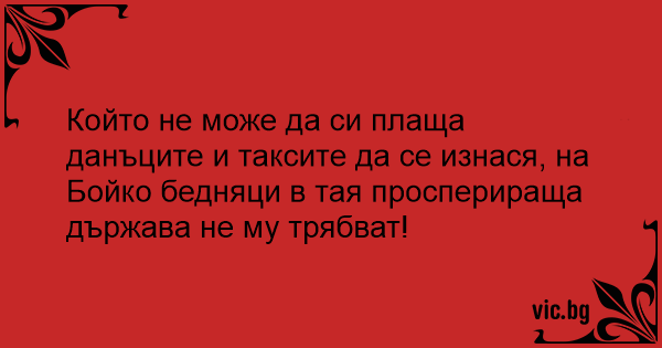 Който не може да си плаща данъците и таксите да се изнася, на Бойко бедняци в тая просперираща държава не му трябват!