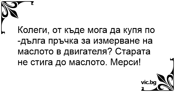 Колеги, от къде мога да купя по-дълга пръчка за измерване на маслото в двигателя? Старата не стига до маслото. Мерси!